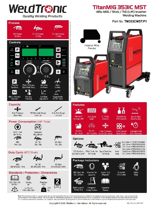 Mig Welder Weldtronic Titan 353ic Mst Multi Function Mig Welder Synerg Eastern Welding Supplies Vic